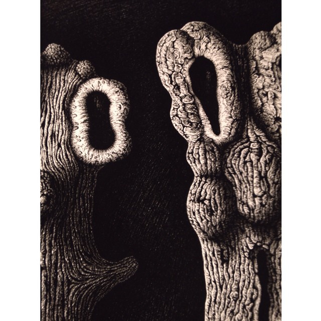 The suggestive tree trunks of Chloé Poizat (detail) are just one of many favorites presented at Pavillon Carré de Baudouin. An exhibition that also includes the moon in a cage, a deer in a prison of pearls, a rose made of dry human skin, and a cardboard forest.