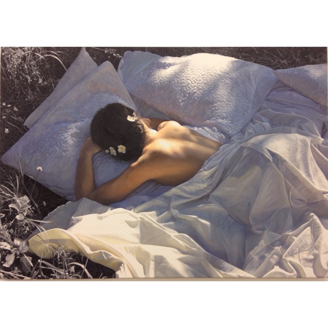 What Delacroix said: ‘the silent power of painting’. The new series of paintings by young French artist Katia Bourdarel have something of an IG account: cool moments shared by confident young women who reappear from picture to picture. But oh the texture of the whites, the desire to touch and feel, the power of painting!